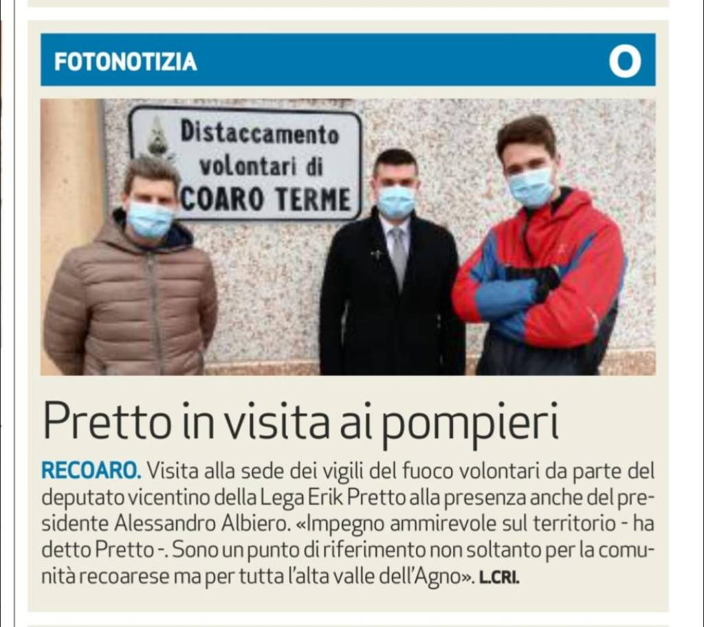 Deputato Pretto in visita dai pompieri volontari